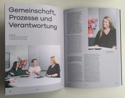 In: &MICA GmbH (Hrsg.): WANDEL. Das Magazin 2021/22. Seite 70–71 (Einleitung zum Interview mit Anne Ehrenberg, Juliane Bertram und Jutta Kliesch)